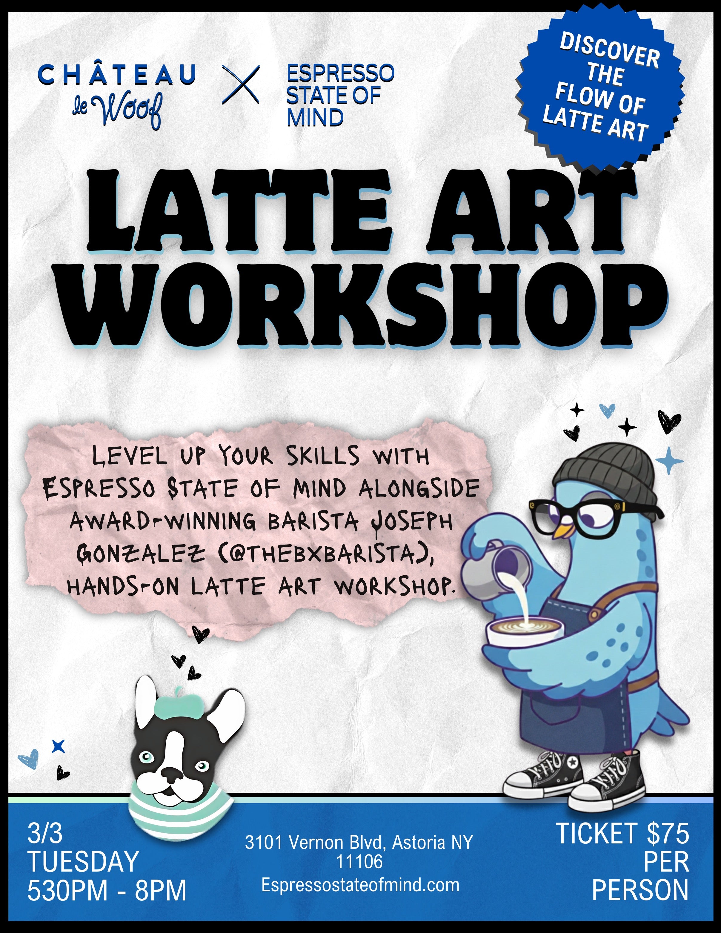 We are partnering with Chateau Le Woof located at 3101 Vernon Blvd, Astoria, NY 11106 to bring this experience to life inside one of Queens most unique cafe spaces.